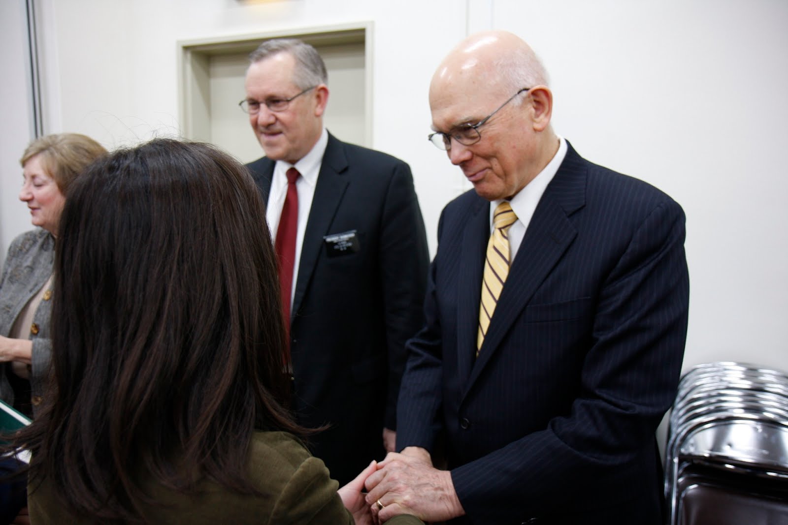 The missionaries were standing in their places waiting for us to arrive with Elder Oaks to get the mission picture taken. They were singing hymns as we walked into the cultural hall. Such a wonderful spirit in the room!