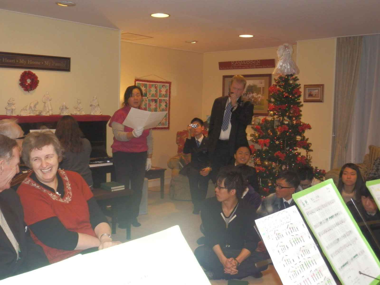 Gary is a welcoming host to the group. Watanabe San-the older lady sitting on the couch is a non-member who loves to come to FHE because she feels younger when she is around the missionaries. She is 89 years old and loves to wear her lovely kimonos.